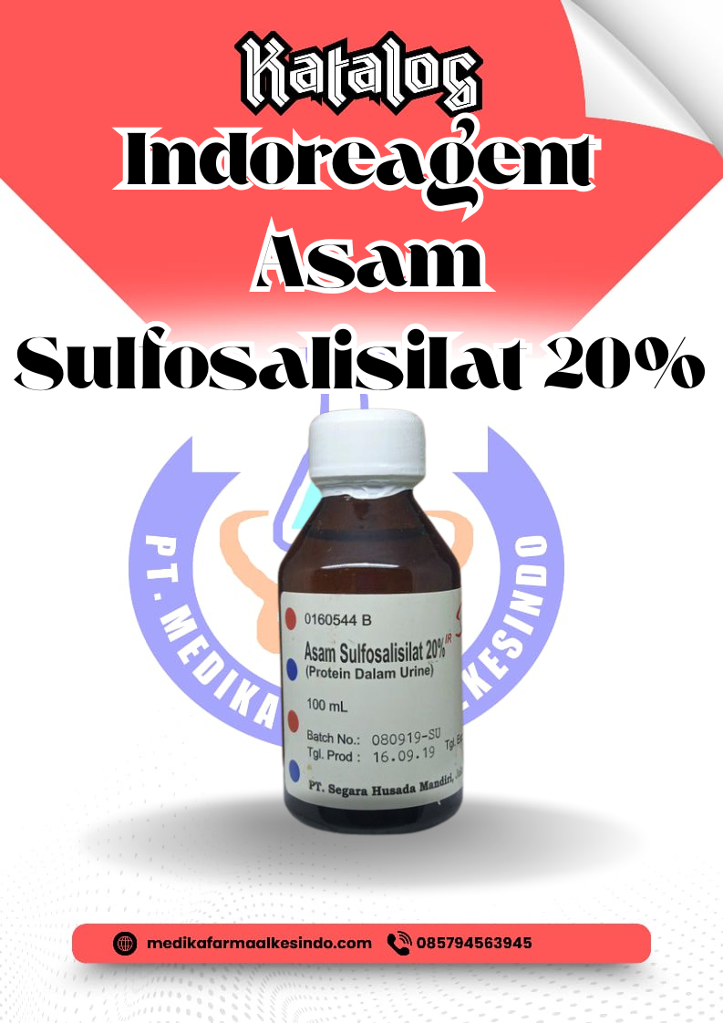 Asam Sulfosalisilat 20% Indoreagent adalah reagen kimia yang digunakan dalam uji diagnostik untuk mendeteksi senyawa indole dalam sampel biologis, seperti urin atau darah. Reagen ini sering digunakan dalam uji indole untuk mengidentifikasi bakteri yang dapat menghasilkan indole, seperti beberapa jenis Escherichia coli (E. coli), yang memiliki kemampuan untuk memetabolisme asam amino tryptophan menjadi indole.