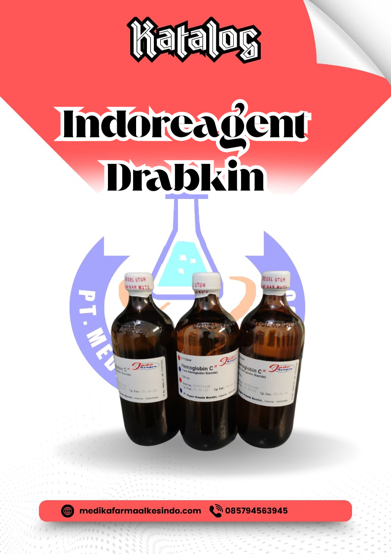 Hemoglobin C (Drabkin) Indoreagent adalah larutan reagen yang digunakan dalam analisis laboratorium untuk mendeteksi dan mengukur konsentrasi hemoglobin C dalam sampel darah. Produk ini merupakan solusi yang digunakan dalam metode Drabkin, yang dirancang khusus untuk menganalisis hemoglobin dan komponen darah lainnya, termasuk hemoglobin C, dalam darah manusia. Hemoglobin C adalah salah satu varian dari hemoglobin yang dapat ditemukan pada individu dengan kondisi genetik tertentu, seperti penyakit hemoglobin C.