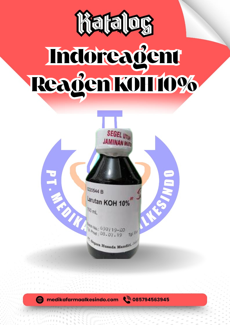 KOH 10% Indoreagent adalah larutan kalium hidroksida (KOH) dengan konsentrasi 10% yang digunakan dalam berbagai aplikasi laboratorium, terutama dalam analisis mikroskopis dan pengujian bahan biologis. Larutan KOH digunakan untuk memecah atau melarutkan jaringan keras atau sel dinding pada sampel, yang memudahkan pengamatan sel atau struktur lainnya di bawah mikroskop.