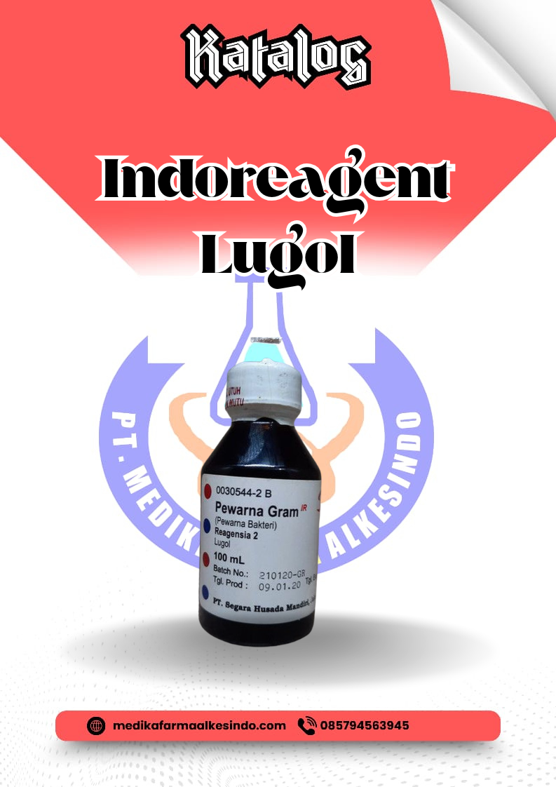 Lugol Indoreagent adalah larutan iodida potasium (KI) dan iodine (I₂) yang digunakan dalam berbagai aplikasi laboratorium, terutama dalam prosedur pewarnaan dan pengujian mikrobiologi. Larutan ini dikenal dengan kemampuannya dalam mengidentifikasi pati, membedakan jenis-jenis sel, serta digunakan dalam berbagai reaksi kimia. Larutan Lugol memiliki warna coklat khas yang disebabkan oleh adanya iodine, yang dapat berikatan dengan pati, menghasilkan perubahan warna menjadi biru tua atau ungu.