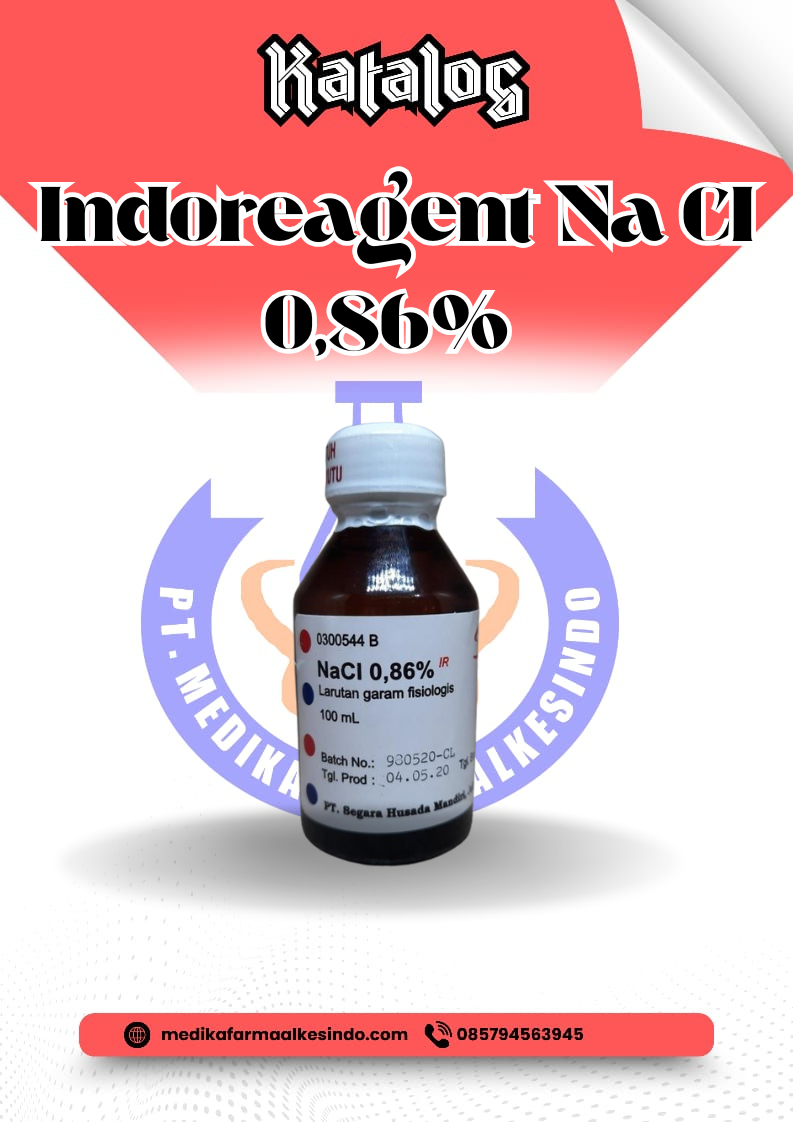 NaCl 0,86% Indoreagent adalah larutan garam fisiologis yang digunakan untuk berbagai keperluan medis dan laboratorium. Larutan ini mengandung natrium klorida (NaCl) dengan konsentrasi 0,86%, yang mirip dengan kadar garam dalam cairan tubuh manusia, sehingga aman digunakan dalam berbagai aplikasi medis.