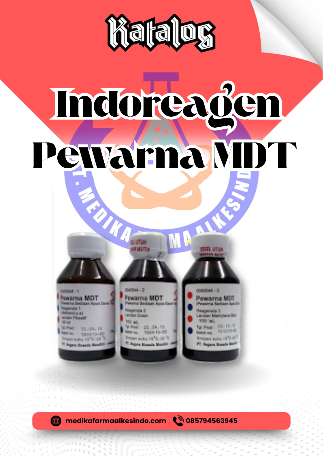 Pewarna MDT adalah reagen laboratorium yang digunakan untuk pewarnaan diferensial pada preparat mikroskopis, khususnya dalam hematologi dan mikrobiologi. Larutan ini membantu menonjolkan struktur sel tertentu sehingga memudahkan identifikasi dan analisis morfologi di bawah mikroskop.
